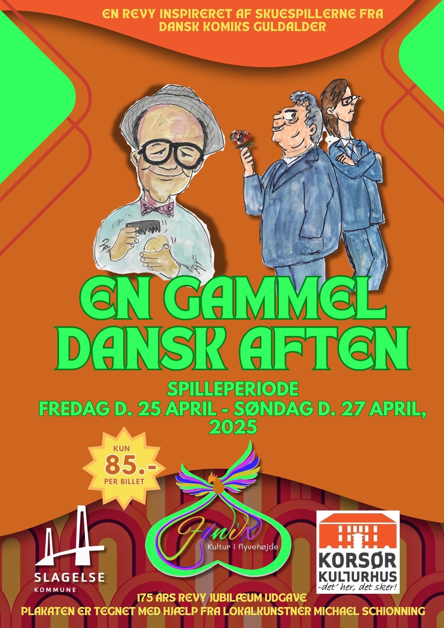 Det er i år 175 år siden, at revyen for første gang viftede med satire-flagstangen på de “åh så skæppe, skønne, skæve gulvbrædder” og det skal fejres! Kom og gør det med os.